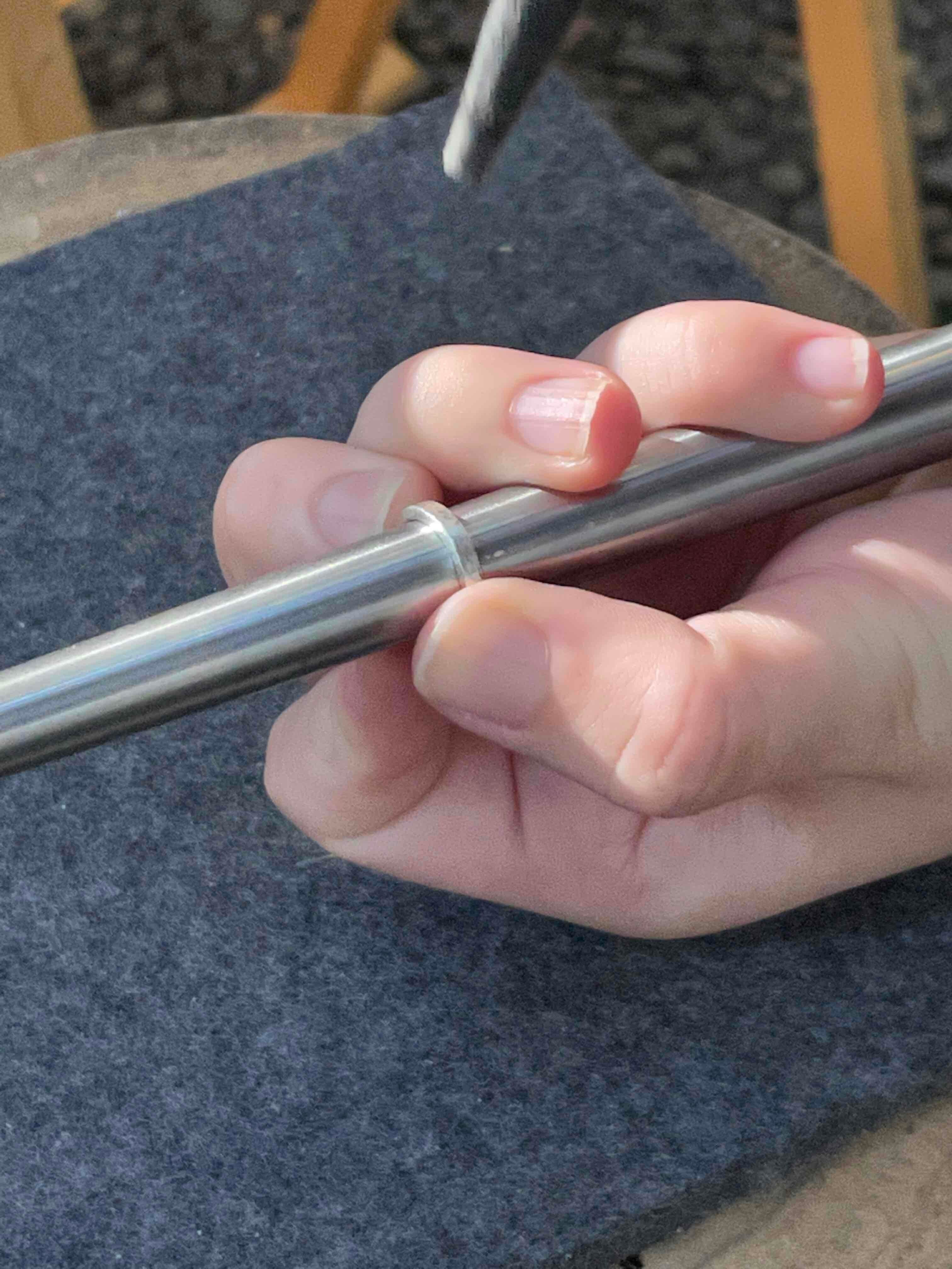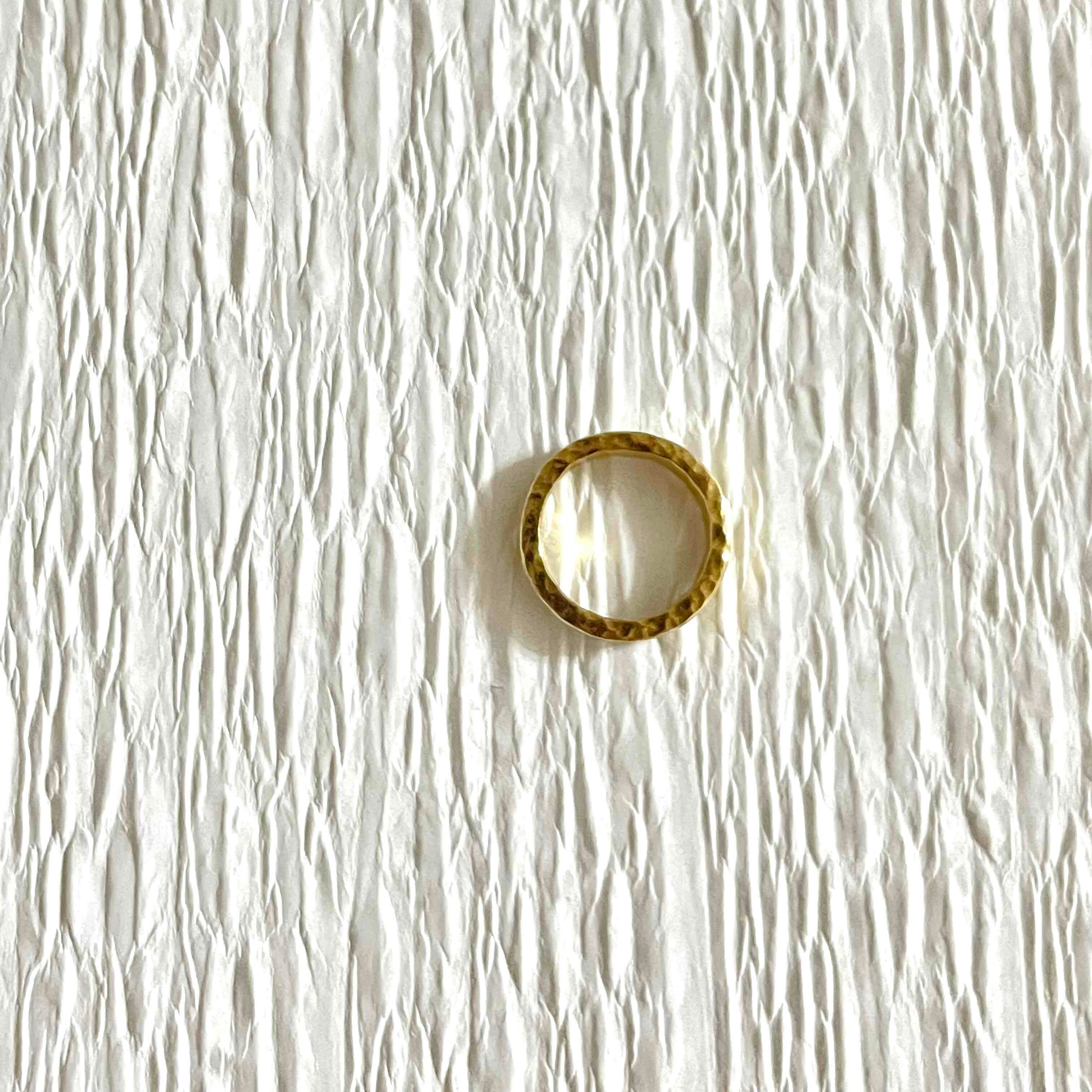 そんな願いを込めて、リングの表面または側面に金槌で模様を打ち込んだデザインです。